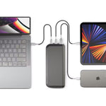 The huge 65W total output allows you to charge multiple devices at their fastest charging speeds, including high powered laptops and phones. This power bank has 3 outputs, including 2x USB-C ports and 1x USB-A port you can charge 3 devices at the same time.