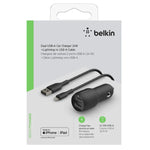 Belkin BoostCharge 24W Dual USB-A Car Charger with USB-A to Lighting Cable