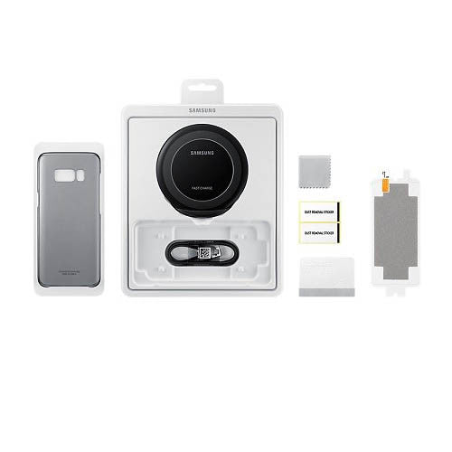 This official Samsung starter pack consists of three essential accessories to enhance your smartphone usage and unlock the full potential of your Galaxy S8. Included in the pack is a wireless charging stand NG930, a clear cover case EF-QG950 and a screen protector ET-FG950 for your device - allowing you to charge completely cable-free while also protecting your device from scratches, scrapes and knocks.