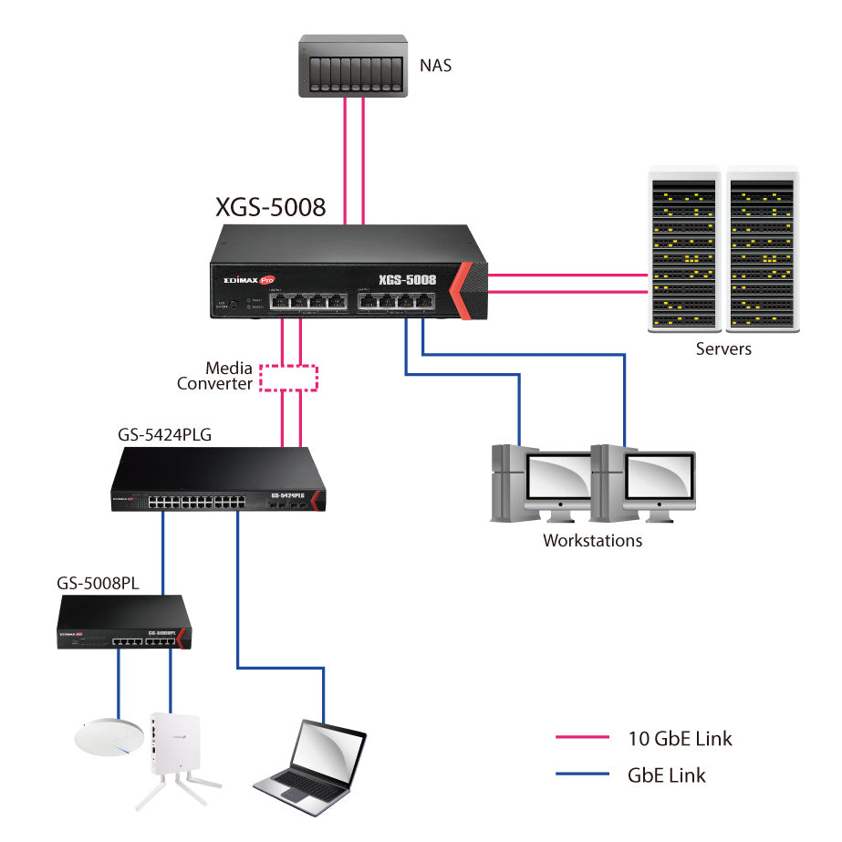 The Edimax Pro GS-5008 is a web-smart switch with 8-port 10GbE. High-speed 10GbE networks are no longer a platform that only large enterprises can afford. The increasing adoption of 10GbE NIC adapters by server and storage vendors is opening up the opportunity for 10GbE connectivity deployment for customers of all sizes – and the XGS-5008 features standard 1U rack-mount brackets for integration with the most widely-used mounting systems on the market. The XGS-5008 is a superb choice to boost your network environment’s performance and efficiency.