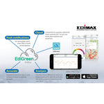 Check data anytime and anywhere and get immediate alerts when PM2.5, temperature and humidity levels are dangerous. Connected to a sophisticated, reliable and proven Edimax cloud network, the EdiGreen app is connected 24/7 and works seamlessly with AirBox.