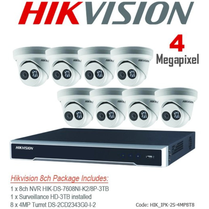 4MP Hikvision IP 8ch Dome Bundle Kit includes: