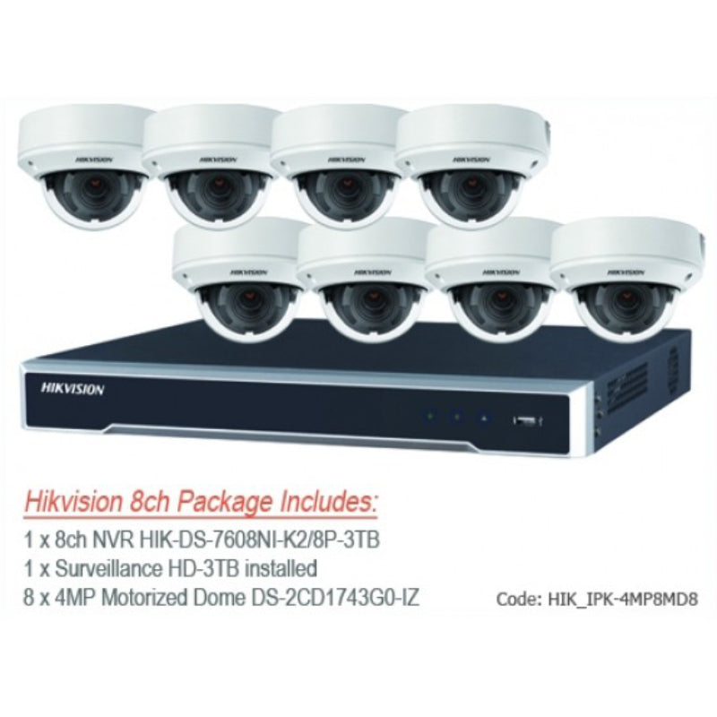 Hikvision IP 8ch Motorised Lens Dome Bundle Kit includes: