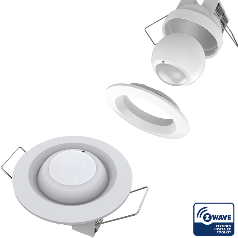 The PHILIO Z-Wave PIR Recessed is a small, battery powered motion sensor designed to be installed within a wall or ceiling.
