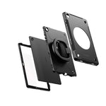 The cases center-point includes a bult-in & 360˚ rotating stand 180˚ folding hand grip & adjustable hand strap.