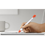 The unique design of Logitech Crayon isn’t just for show. The flat shape stays exactly where you leave it and prevents it from rolling off desks or getting lost underneath shelves.
