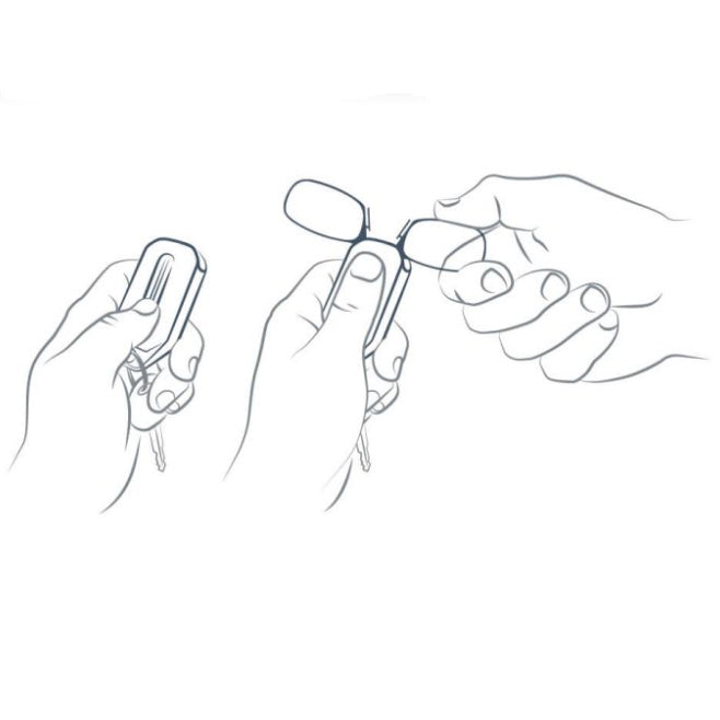 Headline glasses easily slide into the keychain to ensure your glasses are “Always With You.” .”