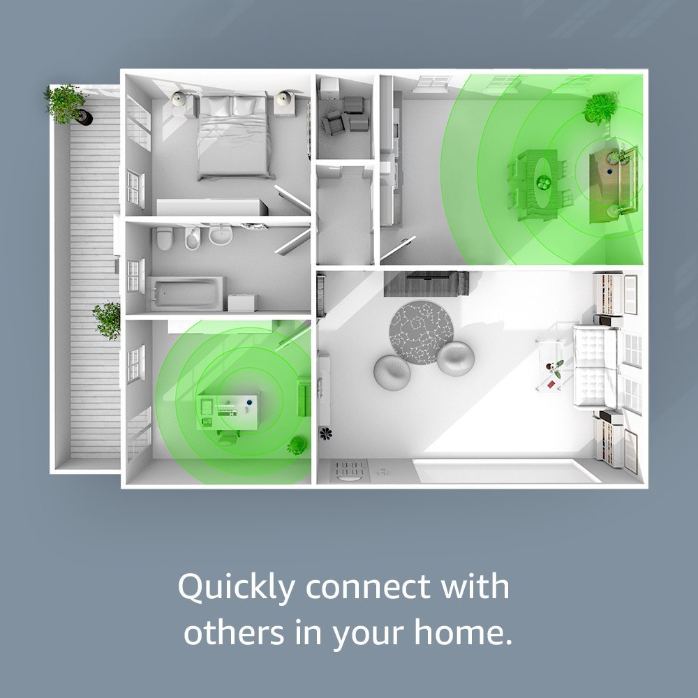 With Echo, you can talk to almost anyone hands-free—no tapping or searching required. Use the Drop In feature when you want to connect with compatible Echo devices in your home. For example, you can ask someone for help with a chore, or remind the kids to go to sleep—without having to raise your voice.