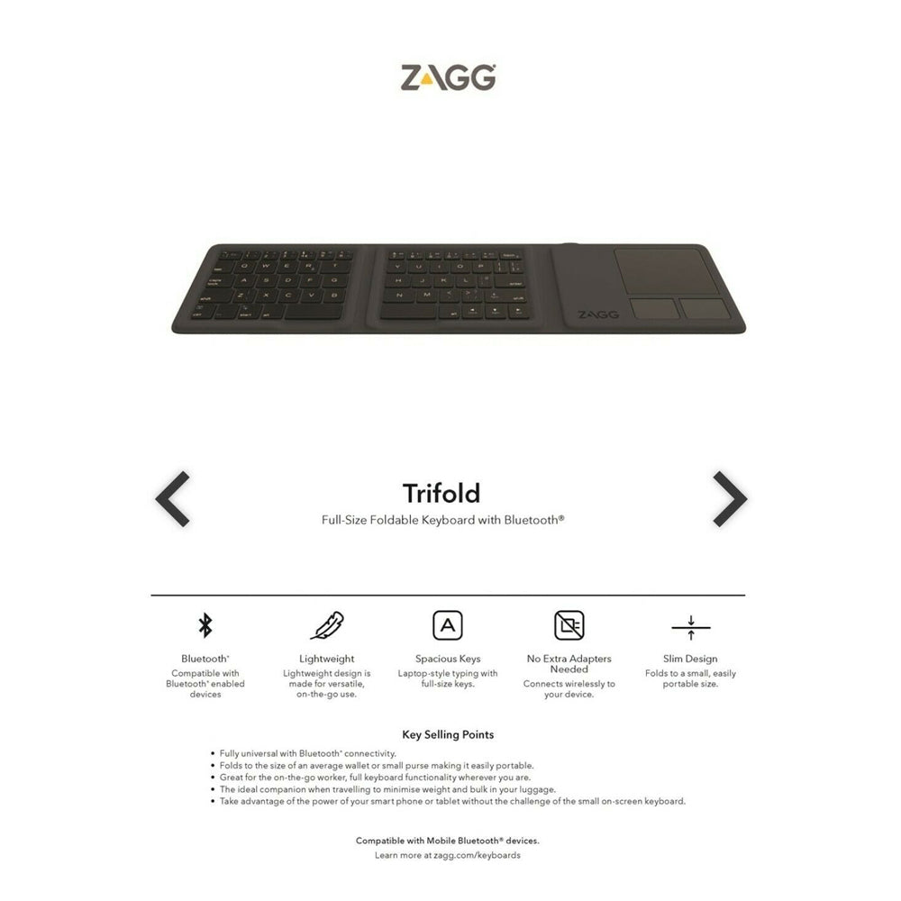 Zagg Tri-Fold Universal Keyboard with Touchpad Black